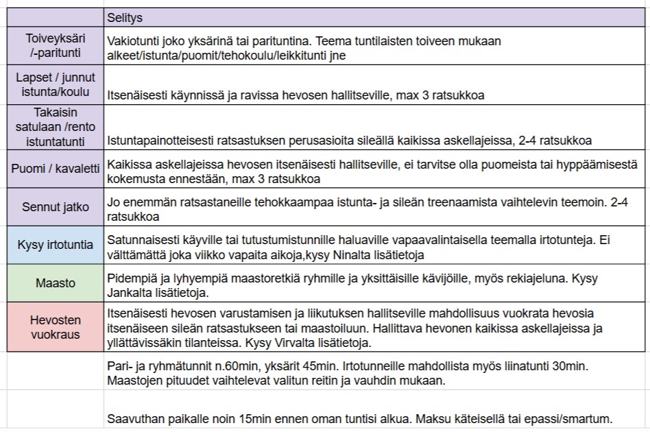 Tuntien, maastojen ja hevosvuokrauksen hinnat koottuna: Hinnasto